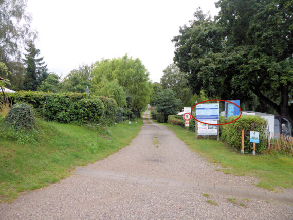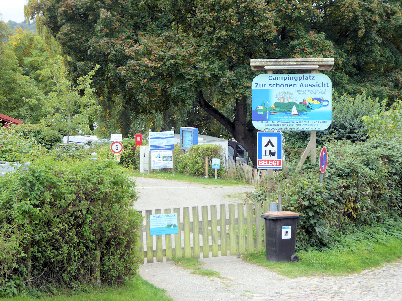 Die Einfahrt zu unserem Campingplatz. Nur wo „Zur schönen Aussicht“ dran steht, können sie auch schöne Aussichten auf einen angenehmen und erholsamen Urlaub erwarten.